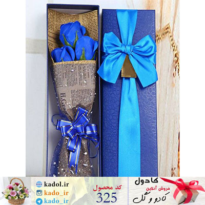 در این محصول دسته گل زیبای رز های آبی در باکس مخصوص آبی رنگ خودنمایی میکند.